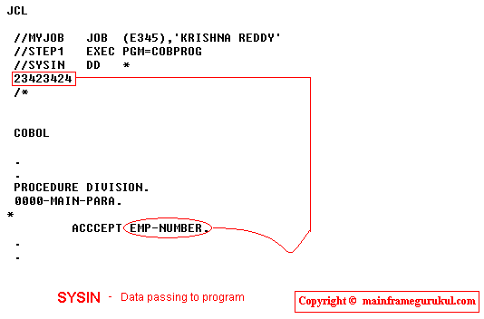 3. Passing data to cobol program using - SYSIN DD *